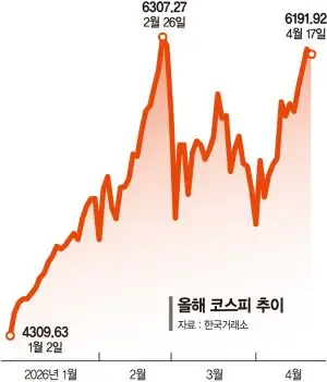 중동전쟁에도 불구하고 코스피는 반도체 실적에 힘입어 상승 추세가 전개되고 있지만, 지정학적 리스크 장기화로 인한 물가·경기 상황을 확인해야 지속 여부를 판가름할 수 있다는 전망이다.