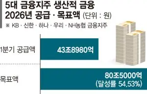 금융지주들이 생산적 금융 공급에 속도를 내는 것은 ‘5개년 계획’의 첫해여서다. 앞서 5대 금융지주는 ‘주택담보대출 중심의 영업에서 벗어나 국가 미래 산업을 육성하는 금융지원을 확대하라’는 이재명 정부 기조에 맞춰 5년간 생산적 금융에 모두 508조원을 투입하기로 했다.