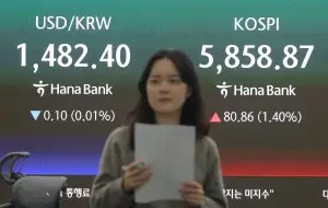 연합뉴스 제공 [파이낸셜뉴스] 코스피가 8일 장 초반 5800선을 회복했다. 미국과 이란이 2주간 휴전에 합의하면서 투자심리가 회복됐기 때문이다. 이날 오전 9시10분 코스피는 전 거래일 대비 328.77p(5.98%) 오른 5823.55에 거래되고 있다. 지수는 전장 대비 5.64% 오른 5804.70에 출발해 오름폭을 키우고 있다. 코스피는 장중 기준 지난 20일 이후 13거래일 만에 5800선을 회복했다. 장 초반 급등하면서 이날 오전 9시 […] 더 보기