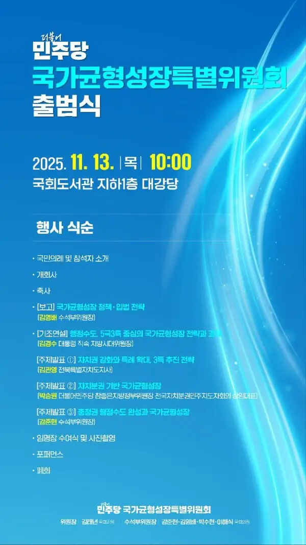 [한국뉴스 이정규 기자] 인천시가 민선 8기 마지막 해인 2026년의 시정 운영 계획을 시민과 직접 공유하는 주요업무보고회를 오는 11월 18일부터 28일까지 개최한다. 시정 목표인 ‘시민이 행복한 세계 초일류 도시 인천’과 ‘글로벌 톱텐 시티’ 도약을 위한 핵심 정책 방향을 시민과 함께 논의하겠다는 취지다. 이번 보고회는 ▲제2경제도시 완성 ▲환경·안전 친화도시 ▲All ways INCHEON ▲문화관광 허브 ▲원·신도심 균형발전 ▲시민중심 […] 더 보기