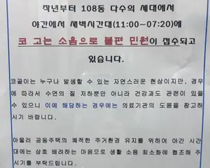 이와 함께 공개된 공문에는 “지난해부터 108동 다수의 세대에서 야간부터 새벽시간대(오후 11시~오전 7시20분)에 코 고는 소음으로 불편 민원이 접수되고 있다”며 “코골이는 누구나 발생할 수 있는 자연스러운 현상이지만 경우에 따라서는 수면의 질 저하뿐 아니라 건강과도 관련이 있을 수 있으니 의료기관의 도움을 참고해달라”는 내용이 담겼다.