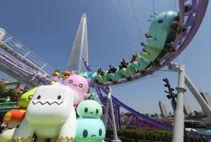 기존 놀이기구를 핑크빈 콘셉트로 리뉴얼한 ‘자이로스핀’도 색다른 재미를 줬다. 원형의 거대한 판이 360도 회전하면서 최고 70㎞ 속도로 상승과 하강을 반복하는 자이로스핀은 이번에 새로 선보인 어트랙션 중 최고의 스릴감을 선사했다. 탑승객을 태운 원형 판이 최대 20m 높이까지 치솟아 올랐다가 급하강할 땐 롯데월드타워와 석촌호수 등 주변 풍경이 전혀 다른 각도로 조망돼 시각적 쾌감을 제공했다.